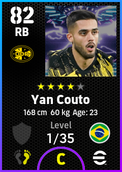 . Yan Couto is a Right Back footballer from Brazil who plays for Borussia Dortmund in eFootball 2026.