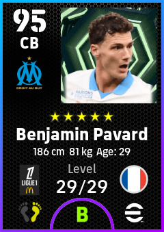 .Benjamin Pavard is a Center Back footballer from France who plays for Olympique De Marseille in eFootball 2026.