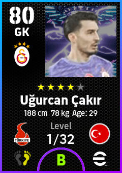 . Uğurcan Çakır is a Goalkeeper footballer from Türkiye who plays for Galatasaray Sk in eFootball 2026.