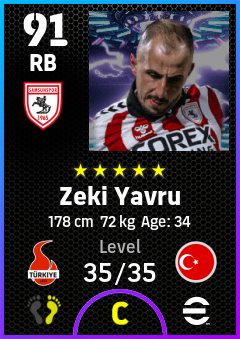 . Zeki Yavru is a Right Back footballer from Türkiye who plays for Samsunspor in eFootball 2026.