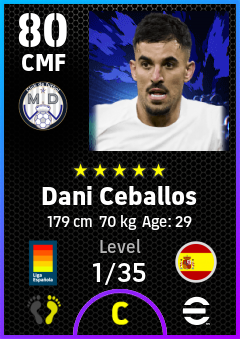 . Dani Ceballos is a Center Midfielder footballer from Spain who plays for Madrid Chamartin B in eFootball 2026.