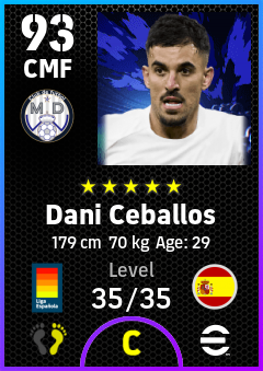 .Dani Ceballos is a Center Midfielder footballer from Spain who plays for Madrid Chamartin B in eFootball 2026.