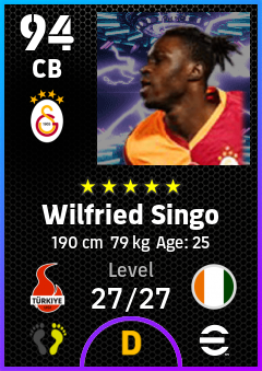 .Wilfried Singo is a Center Back footballer from Côte D'ivoire who plays for Galatasaray Sk in eFootball 2026.