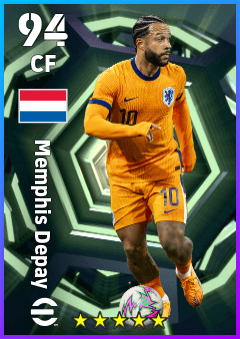 . Memphis Depay is a Center Forward footballer from Netherlands who plays for Netherlands in eFootball 2026.