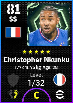 . Christopher Nkunku is a Second Striker footballer from France who plays for France in eFootball 2026.