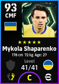 . Mykola Shaparenko is a Center Midfielder footballer from Ukraine who plays for Ukraine in eFootball 2026.