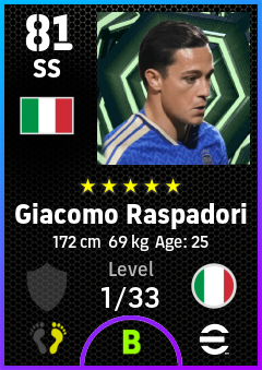 . Giacomo Raspadori is a Second Striker footballer from Italy who plays for Italy in eFootball 2026.