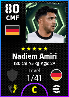 . Nadiem Amiri is a Center Midfielder footballer from Germany who plays for Germany in eFootball 2026.
