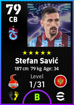 . Stefan Savić is a Center Back footballer from Montenegro who plays for Trabzonspor in eFootball 2026.