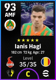 .Ianis Hagi is a Attacking Midfielder footballer from Romania who plays for Corendon Alanyaspor in eFootball 2026.