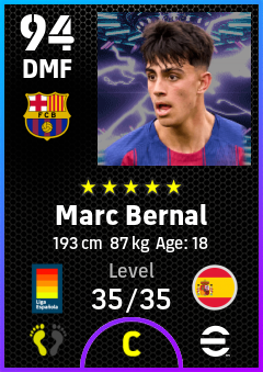 .Marc Bernal is a Defensive Midfielder footballer from Spain who plays for Fc Barcelona in eFootball 2026.