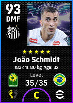 .João Schmidt is a Defensive Midfielder footballer from Brazil who plays for Santos Fc in eFootball 2026.