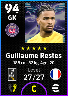 . Guillaume Restes is a Goalkeeper footballer from France who plays for Toulouse Fc in eFootball 2026.