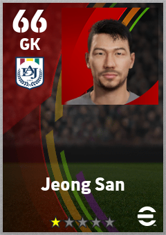 . Jeong San is a Goalkeeper footballer from Korea Republic who plays for Daejeon Rgw in eFootball 2026.