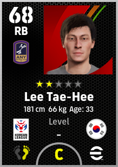 . Lee Tae-Hee is a Right Back footballer from Korea Republic who plays for Anyang P in eFootball 2026.