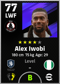 . Alex Iwobi is a Left Wing Forward footballer from Nigeria who plays for Fulham W in eFootball 2026.