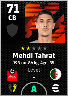 . Mehdi Tahrat is a Center Back footballer from Algeria who plays for Kanchanaburi Power Fc in eFootball 2026.