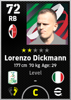 . Lorenzo Dickmann is a Right Back footballer from Italy who plays for Bari Br in eFootball 2026.