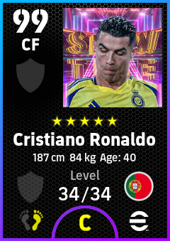 . Cristiano Ronaldo is a Center Forward footballer from Portugal who plays for Free in eFootball 2026.