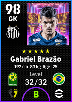 .Gabriel Brazão is a Goalkeeper footballer from Brazil who plays for Santos Fc in eFootball 2026.