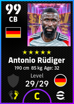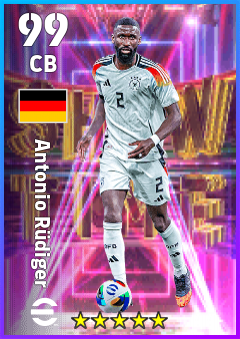 . Antonio Rüdiger is a Center Back footballer from Germany who plays for Germany in eFootball 2026.