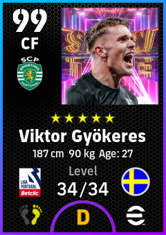 .Viktor Gyökeres is a Center Forward footballer from Sweden who plays for Sporting Cp in eFootball 2026.