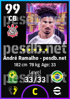 . André Ramalho is a Center Back footballer from Brazil who plays for Sc Corinthians Paulista in eFootball 2026.