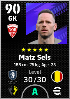 . Matz Sels is a Goalkeeper footballer from Belgium who plays for Nottingham Rw in eFootball 2026.
