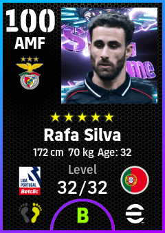 . Rafa Silva is a Attacking Midfielder footballer from Portugal who plays for Sl Benfica in eFootball 2026.
