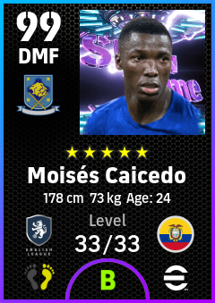 . Moisés Caicedo is a Defensive Midfielder footballer from Ecuador who plays for Chelsea B in eFootball 2026.