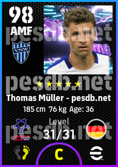 . Thomas Müller is a Attacking Midfielder footballer from Germany who plays for Vancouver Bw in eFootball 2026.