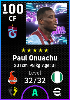 . Paul Onuachu is a Center Forward footballer from Nigeria who plays for Trabzonspor in eFootball 2026.