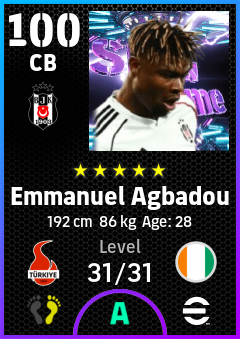 . Emmanuel Agbadou is a Center Back footballer from Côte D'ivoire who plays for Beşiktaş Jk in eFootball 2026.