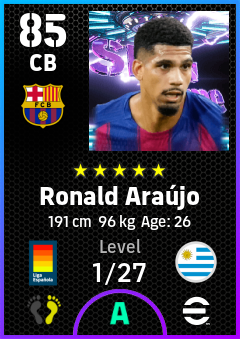 . Ronald Araújo is a Center Back footballer from Uruguay who plays for Fc Barcelona in eFootball 2026.