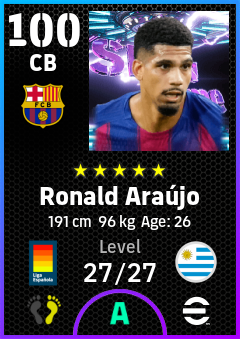 .Ronald Araújo is a Center Back footballer from Uruguay who plays for Fc Barcelona in eFootball 2026.
