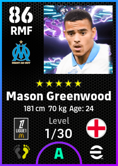 . Mason Greenwood is a Right Midfielder footballer from England who plays for Olympique De Marseille in eFootball 2026.