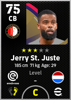 . Jerry St. Juste is a Center Back footballer from Netherlands who plays for Feyenoord in eFootball 2026.