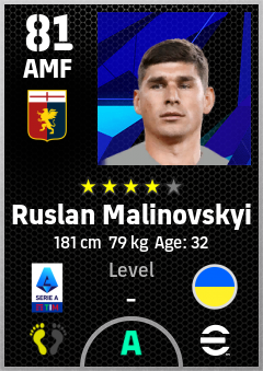 . Ruslan Malinovskyi is a Attacking Midfielder footballer from Ukraine who plays for Genova Rb in eFootball 2026.