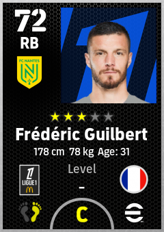. Frédéric Guilbert is a Right Back footballer from France who plays for Fc Nantes in eFootball 2026.