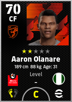 . Aaron Olanare is a Center Forward footballer from Nigeria who plays for Pt Prachuap Fc in eFootball 2026.