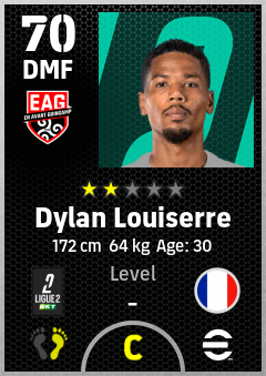 . Dylan Louiserre is a Defensive Midfielder footballer from France who plays for En Avant Guingamp in eFootball 2026.