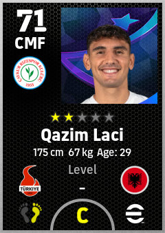 . Qazim Laci is a Center Midfielder footballer from Albania who plays for Çaykur Rizespor in eFootball 2026.
