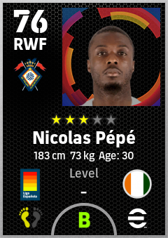 . Nicolas Pépé is a Right Wing Forward footballer from Côte D'ivoire who plays for Villarreal A in eFootball 2026.