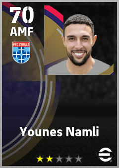 . Younes Namli is a Attacking Midfielder footballer from Denmark who plays for Pec Zwolle in eFootball 2026.