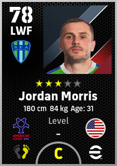 . Jordan Morris is a Left Wing Forward footballer from United States who plays for Seattle Gb in eFootball 2026.