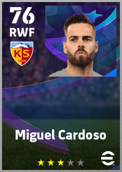 . Miguel Cardoso is a Right Wing Forward footballer from Portugal who plays for Mondihome Kayserispor in eFootball 2026.