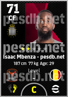 . Isaac Mbenza is a Center Forward footballer from Belgium who plays for Charleroi Zw in eFootball 2026.