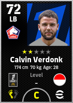 . Calvin Verdonk is a Left Back footballer from Indonesia who plays for Losc Lille in eFootball 2026.