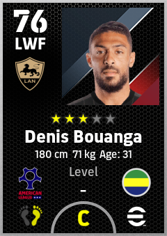 . Denis Bouanga is a Left Wing Forward footballer from Gabon who plays for Los Angeles By in eFootball 2026.