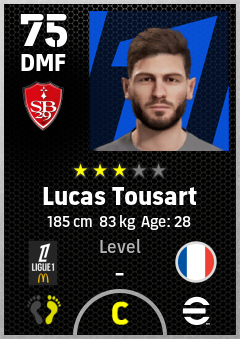 . Lucas Tousart is a Defensive Midfielder footballer from France who plays for Stade Brestois 29 in eFootball 2026.